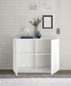 Credenza con 2 ante realizzata in legno colore bianco lucido, apprezzata per il design essenziale e per la sua multifunzionalità. Infatti, il mobile Effedy potrà essere collocato in qualsiasi stanza dal soggiorno, salotto o ingresso. Il nostro mobiletto si caratterizza per l’elemento rettangolare che emerge dal frontale e che rappresenta una comoda maniglia.