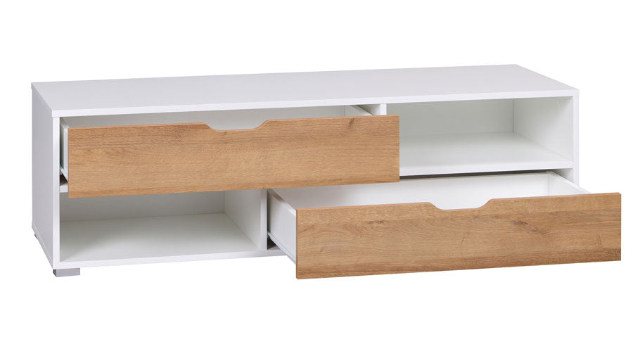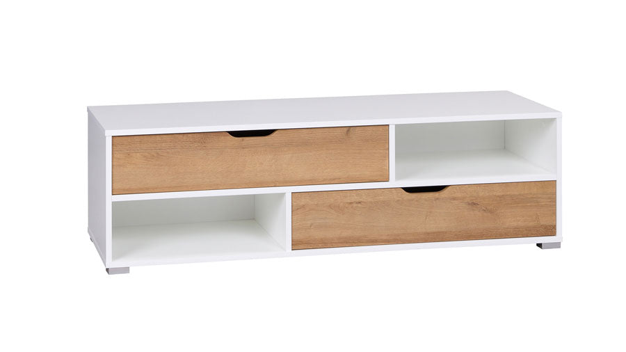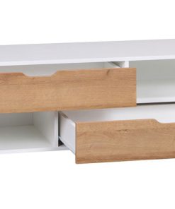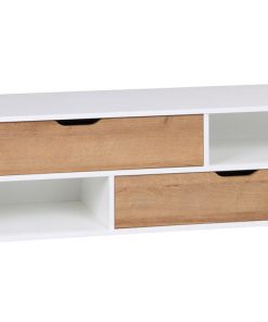 Egabel – Porta tv basso in legno con cassetti e vani bianco e naturale cm 135x40x40h