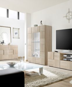 Elgin – Salotto completo con porta tv vetrina e madia finitura rovere