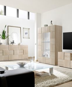 Elgin – Salotto completo con porta tv vetrina e madia finitura rovere