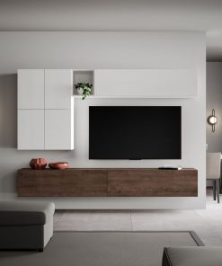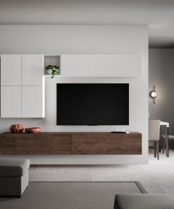 Parete dal design lineare Eliodora, composta da 8 elementi, tutti pensili in legno di dimensioni diverse con 1 vano a giorno. Eliodora è una parete moderna che offre capienza, arredare con un’estetica distinta tipica del Made in Italy.