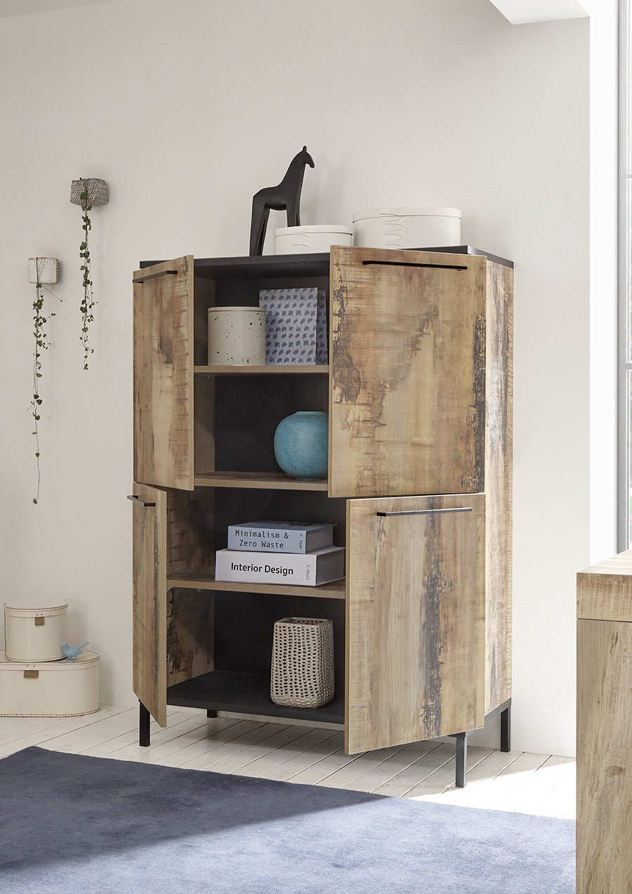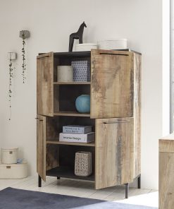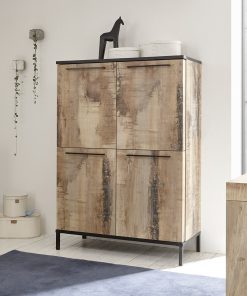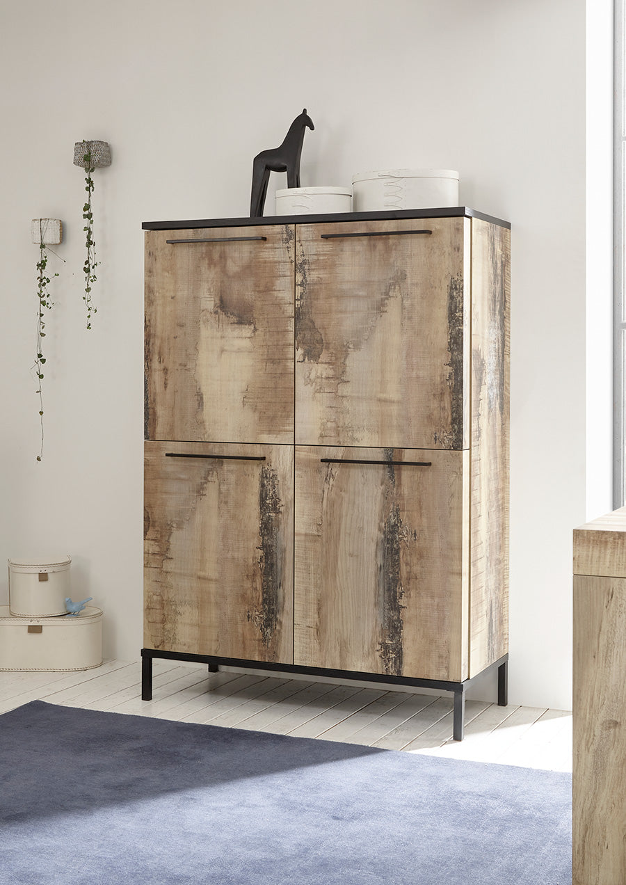Elkar – Credenza alta 4 ante in legno stile industriale piedi in metallo cm 106x50x152h