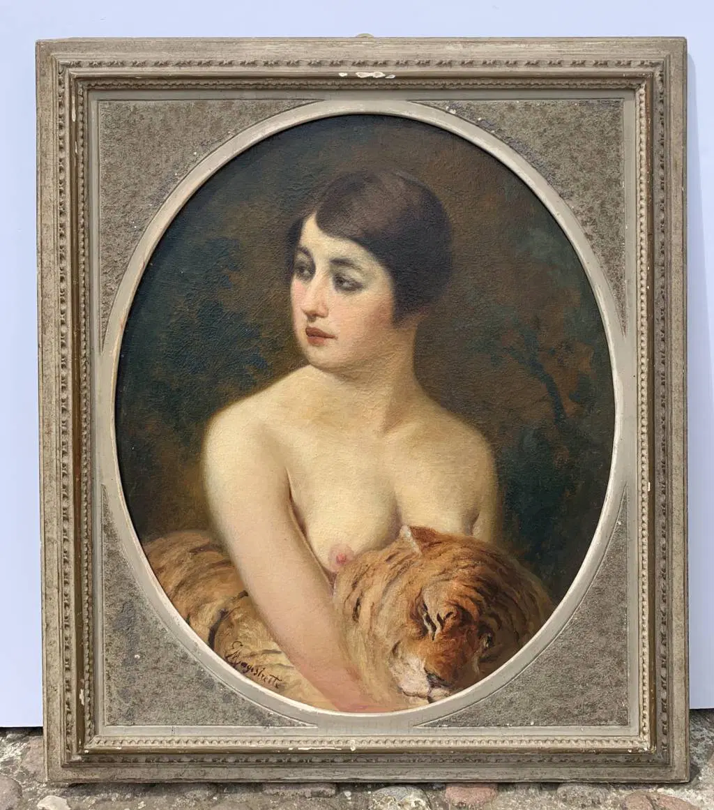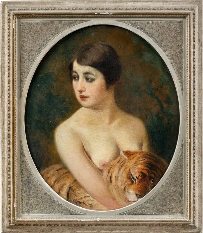 Emilio Magistretti (Milano 1851 – Milano 1936) – Fanciulla con tigre.