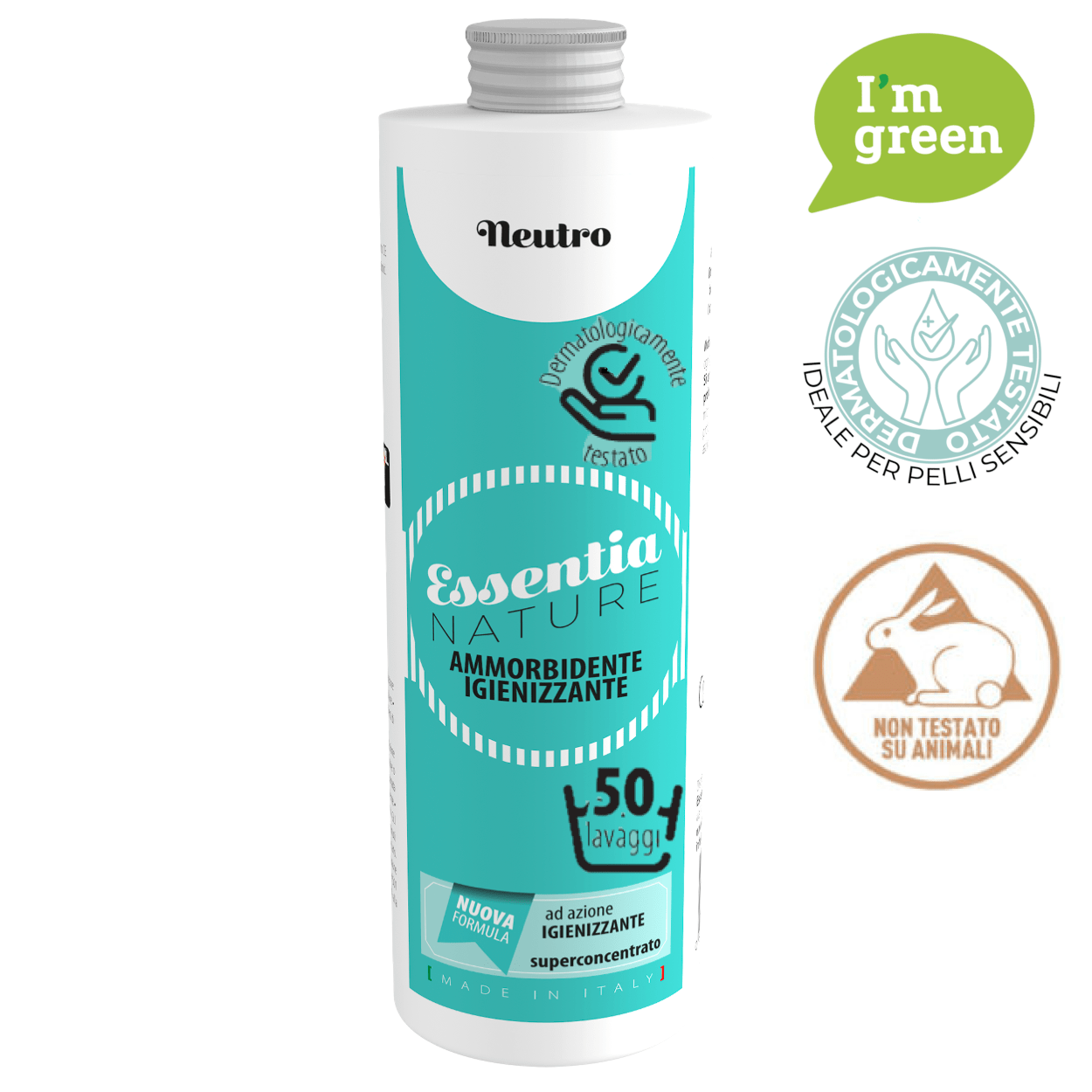 Ammorbidente Neutro Essentia é un prodotto per tutti i tipi di tessuti e biancheria. Il prodotto è concepito per un utilizzo sia domestico che professionale. Dermatologicamente Testato: Le formulazioni ESSENTIA sono dermatologicamente testate per pelli sensibili (PATCH TEST pelli sensibili) presso laboratori indipendenti che hanno condotto i test su volontari tutti con pelle sensibile. Il test è stato applicato su 140 volontari con pelle sensibile, di età compresa tra i 18 e i 70 anni. Sia di sesso maschile che femminile. Con uso continuativo per 4 settimane consecutive più volte alla settimana. 100% avevano pelle sensibile ed il prodotto Ammorbidente Neutro ESSENTIA è stato classificato con una ottima accettabilità cutanea quindi può vantare il claim “TESTATO SOTTO CONTROLLO DERMATOLOGICO” In nostro ammorbidente è indicato per ogni tipologia di tessuto e la sua azione è maggiore durante l’ultimo risciacquo. Essentia con il suo ammorbidente dona elasticità e morbidezza ai vostri indumenti. L’uso del prodotto facilita la stiratura ed evita l’accumulo di cariche elettrostatiche. La speciale formula AD AZIONE IGIENIZZANTE con Sali Quaternari, rende più sicuro il vostro lavaggio e l’igiene dei vostri capi. La formula Neutra lo rende perfetto anche in abbinamento alle numerose fragranze per bucato Essentia.