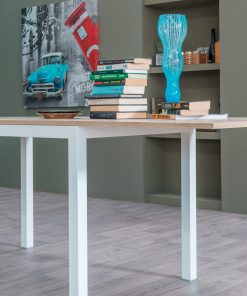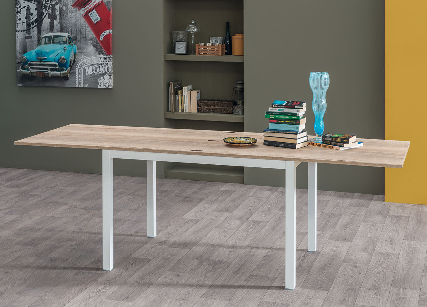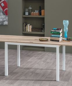 Tavolo da pranzo allungabile Eustelio Lusso versione con apertura a libro, un’idea perfetta per chi ha bisogno di un tavolo dalle piccole dimensioni ma che in un solo gesto, raddoppia la sua lunghezza. Composto da semplice struttura in metallo, il piano in legno è realizzabile in diverse finiture e disponibile in due dimensioni.