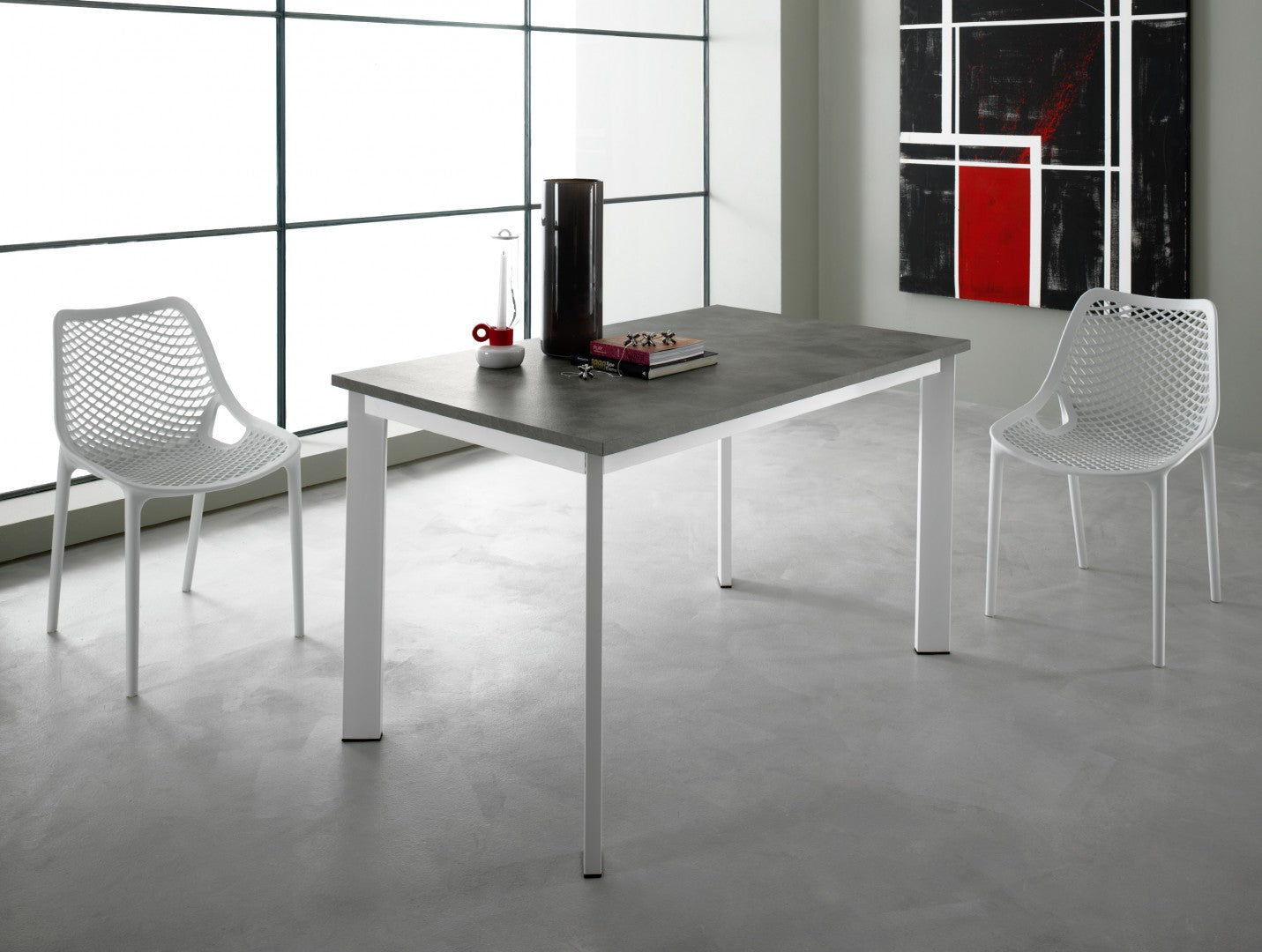 Il tavolo moderno Evo si estende da cm 130 a cm 185, mettendo a disposizione piani in nobilitato, laminato o vetro in varie finiture a cui abbinare la struttura in metallo anch’essa in diverse finiture disponibili. Tutto ciò permette di creare abbinamenti creativi e in sintonia con il vostro arredamento.
