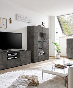 Exeter – Salotto completo design moderno con porta tv vetrina e credenza colore ossido