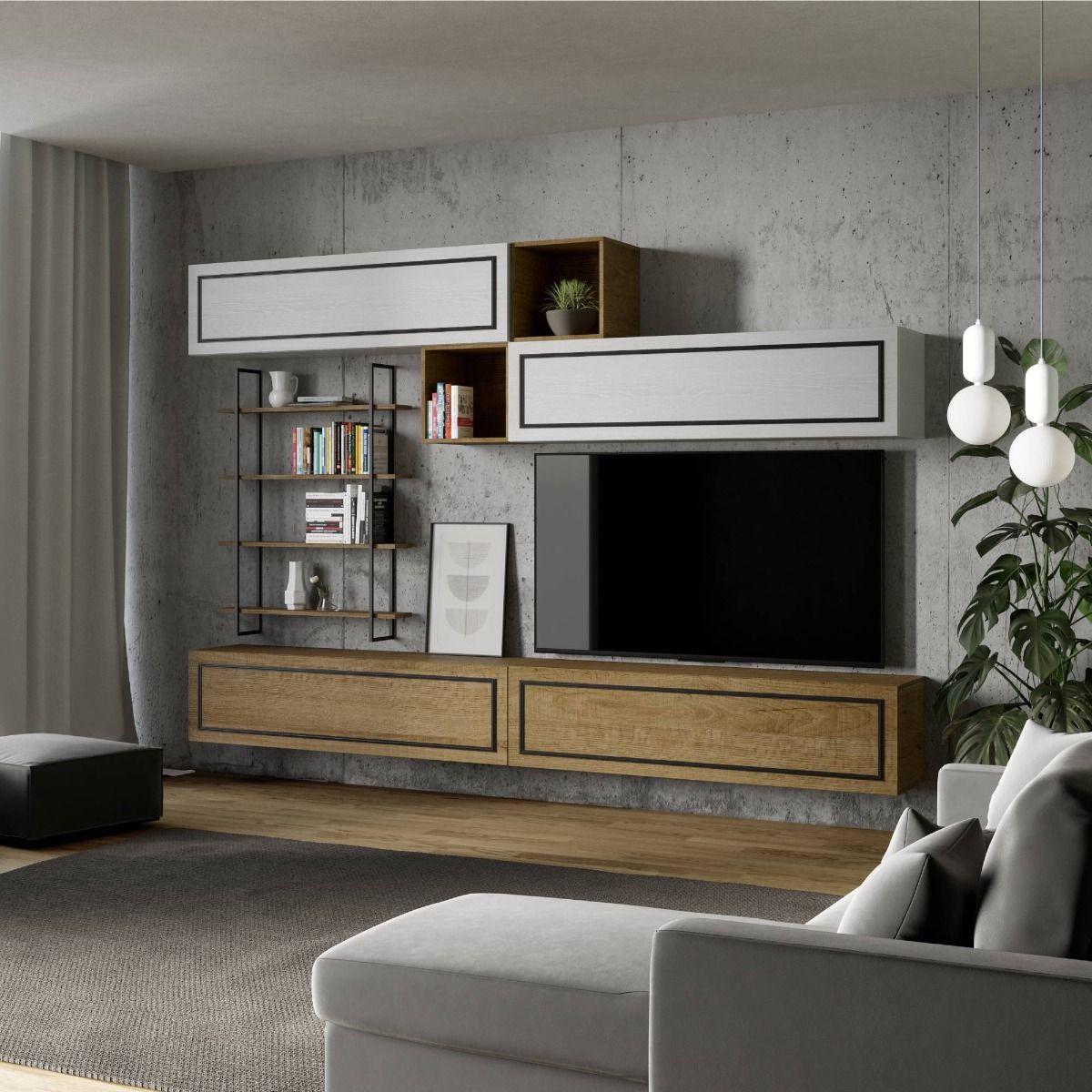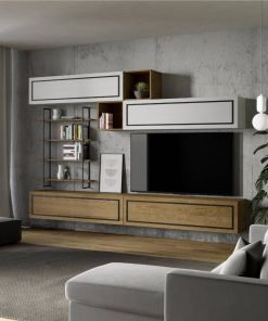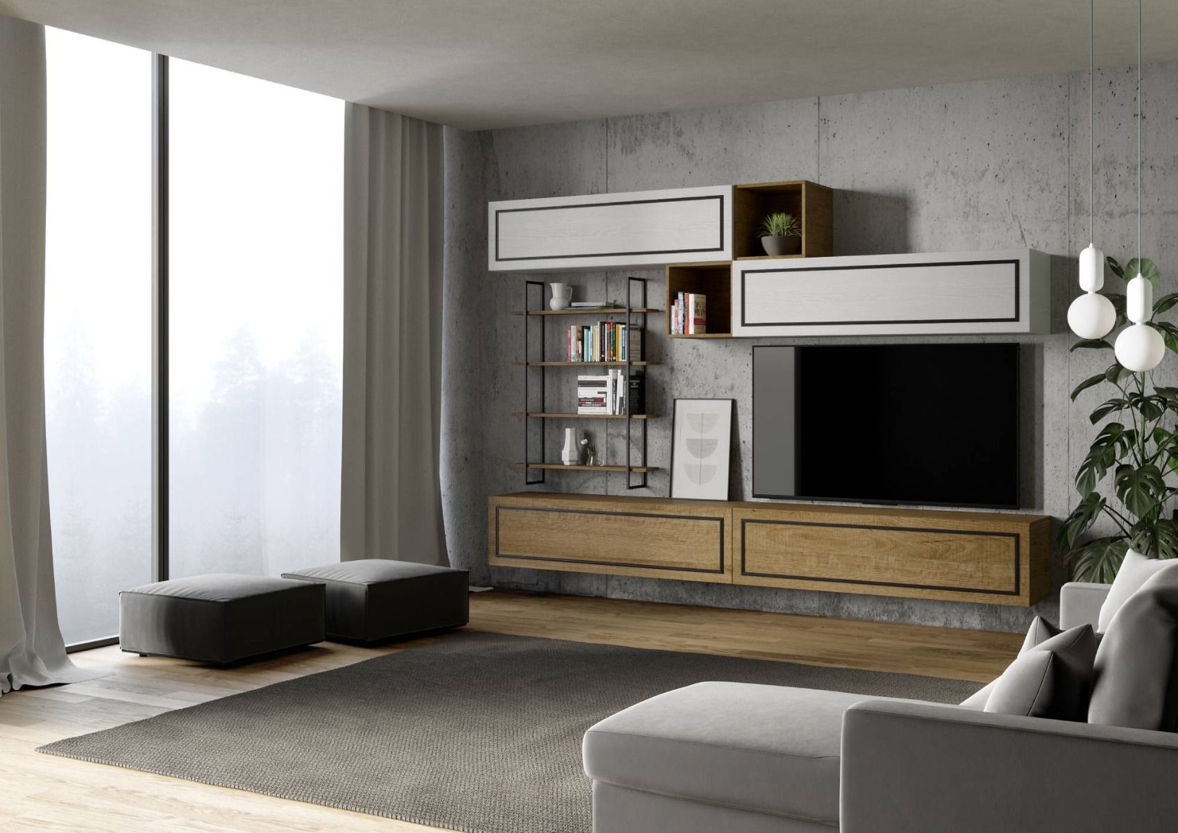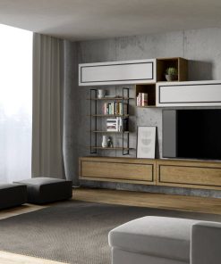 Parete moderna da soggiorno modello Faenza versione Evo, ossia i sui 4 pensili orizzontali in legno della parete Faenza semplice, sono arricchiti da cornici colore antracite, dettaglio singolare e gradevole. Oltre ai pensili orizzontali la nostra parete design dispone di due vani aperti, che contribuiscono a creare una composizione più equilibrata e dinamica. Se vorrai, potrai aggiungere la libreria in ferro con 4 mensole come optional.
