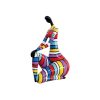 Scultura da esporre in soggiorno realizzata a mano in poliresina. La raffigurazione presenta un cane dal volto nero ed il corpo colorato con molti colori accesi e vivi che portano luminosità e modernità nell’ambiente in cui questa scultura viene posizionata. Adattabile in ogni ambiente e con ogni genere di arredamento, questo elemento è il must di un soggiorno moderno.