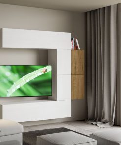 Fasma – Soggiorno parete moderna con pensili in legno quercia e bianco