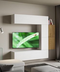 Fasma – Soggiorno parete moderna con pensili in legno quercia e bianco
