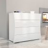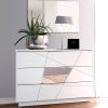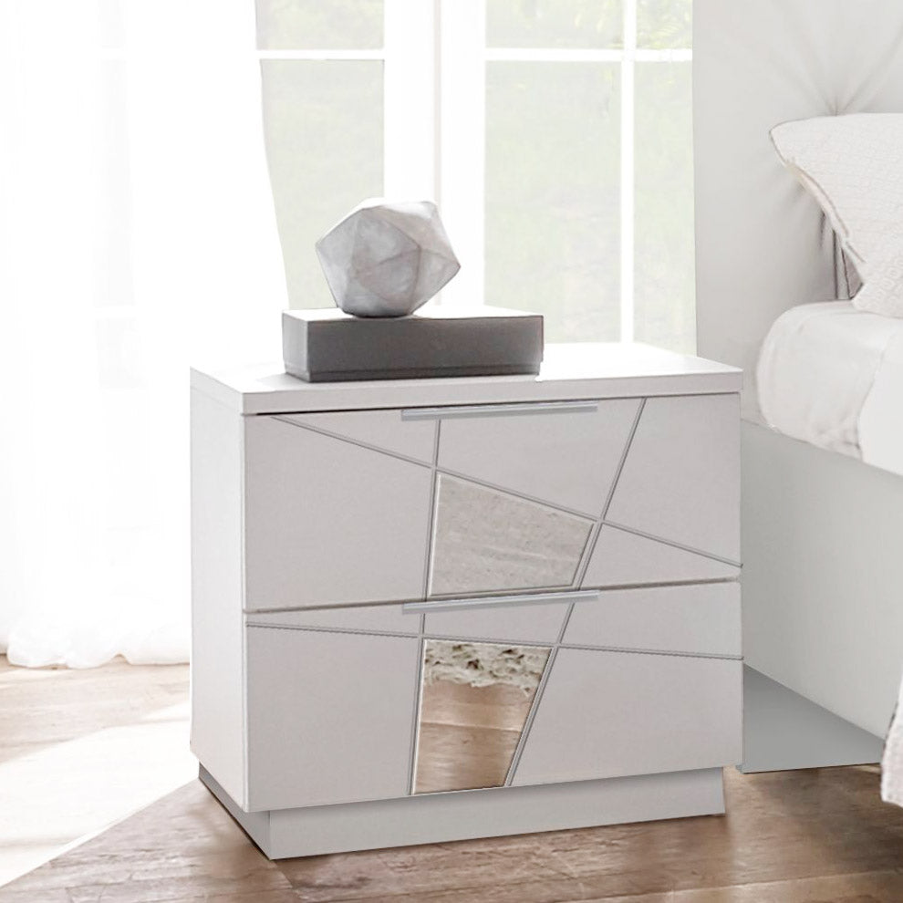 Comodino 2 cassetti da camera in legno bianco opaco con specchi sul frontale