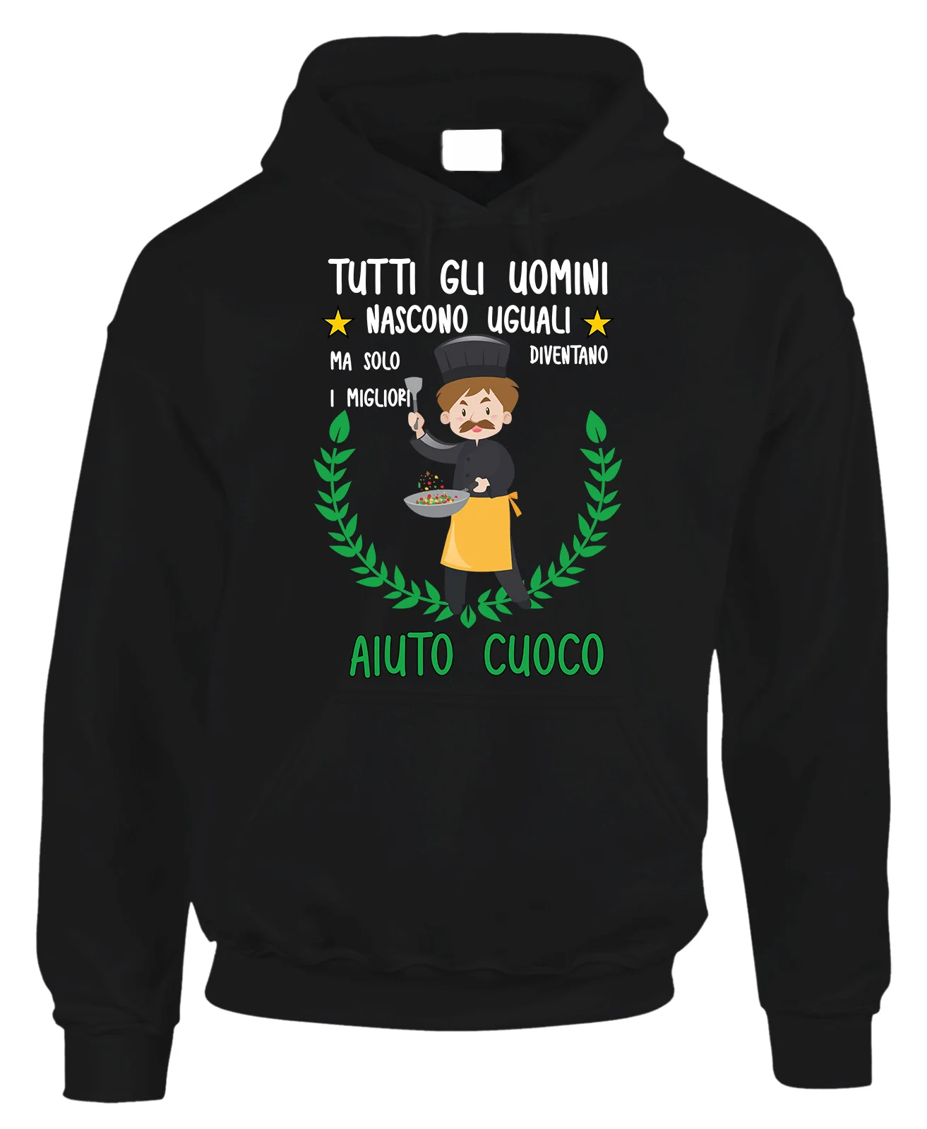 Felpa con cappuccio e tascone frontale con una stampa simpatica creata per fare un regalo al Aiuto Cuoco