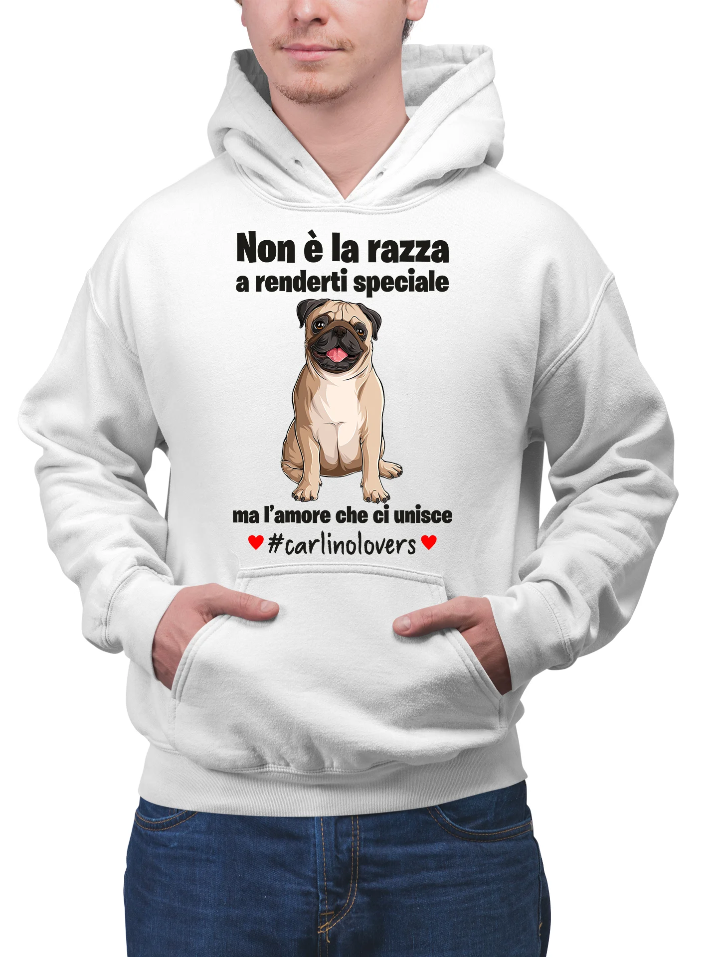 Felpa Carlino Uomo Non è la razza che conta ma l’amore che ci unisce felpa con cappuccio Uomo divertenti