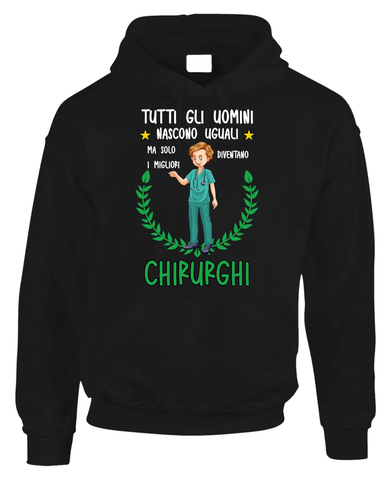 Felpa con cappuccio e tascone frontale con una stampa simpatica creata per fare un regalo al Chirurgo