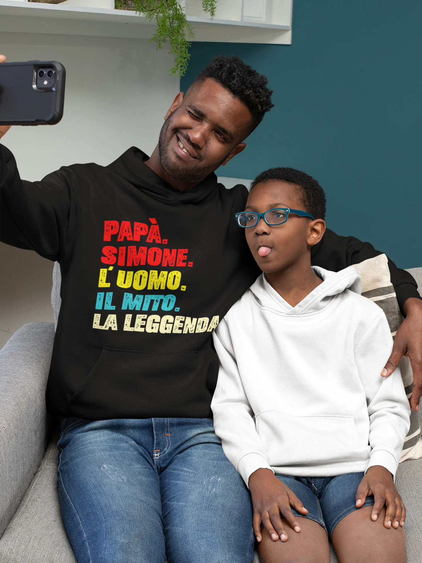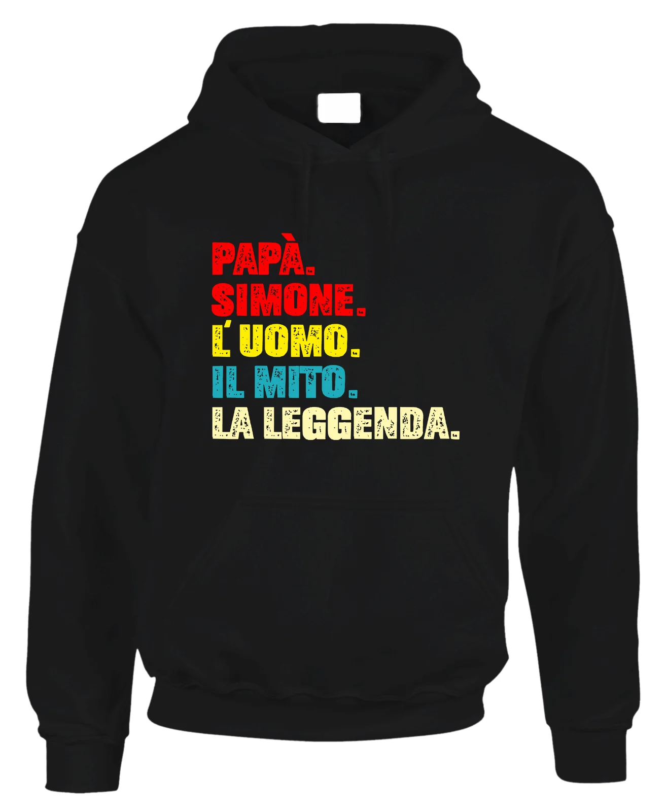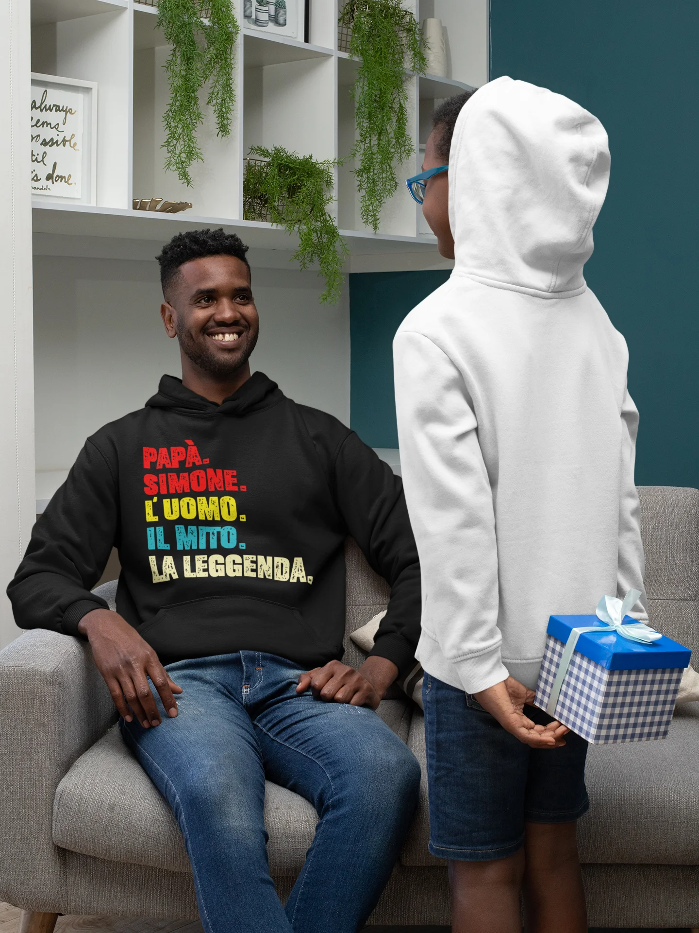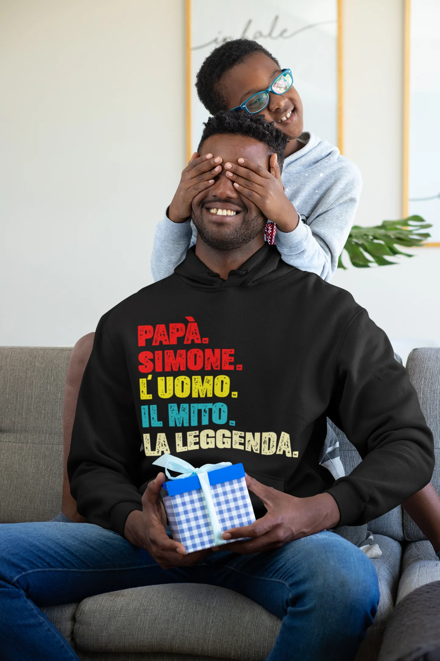 Felpa con cappuccio Papà Personalizzabile con nome Festa del Papà L’uomo Il mito la leggenda personalizzata t-shirt divertente Idea regalo papà