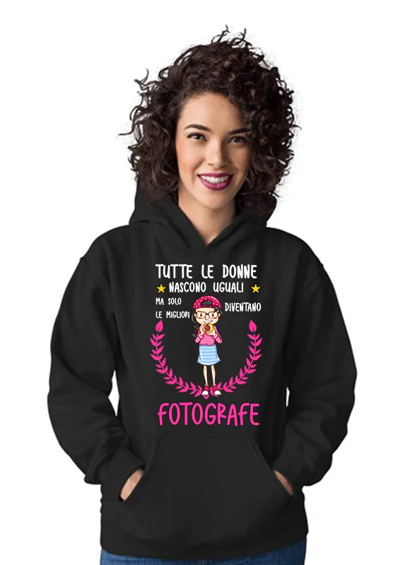 Felpa 100% in cotone con cappuccio e tascone frontale, lacci a temaFotografa divertente Mestieri Tutte le donnenascono uguali, ma solo le migliori diventano fotografe Felpone con cappuccio