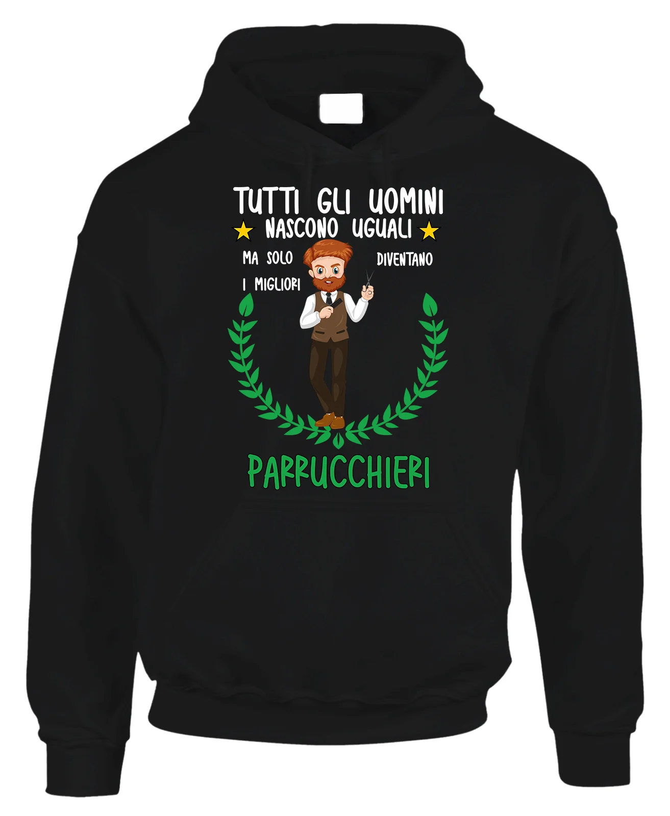 Felpa con cappuccio e tascone frontale con una stampa simpatica creata per fare un regalo al Parrucchiere