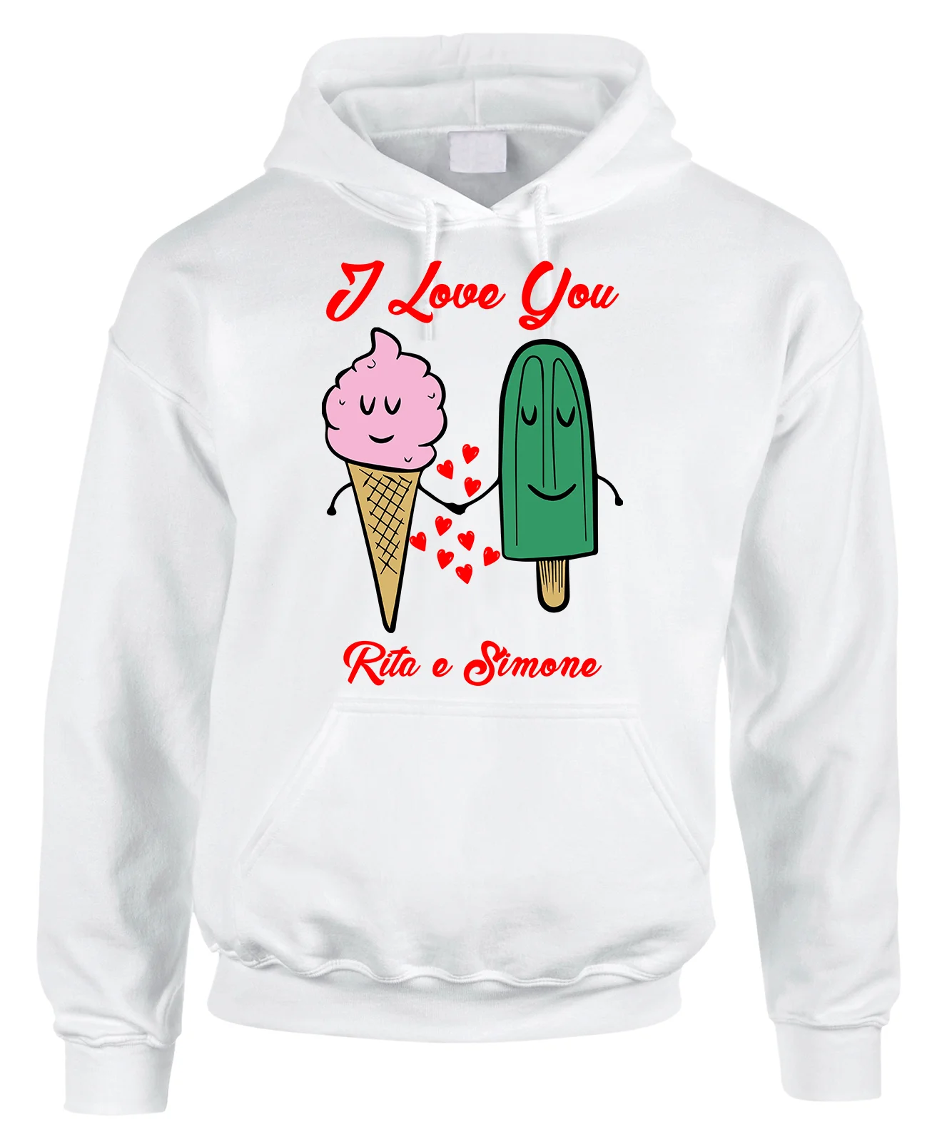Felpa PERSONALIZZABILE SanValentino Regalo Fidanzati Innamorati Divertenti Ice Cream