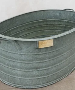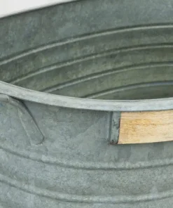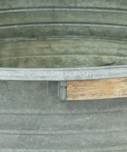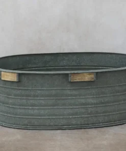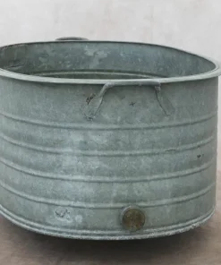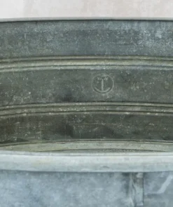 Grande fioriera in metallo zincato con manici per arredamento interno ed esterno. Trattandosi di oggetti antichi,misure e dimensioni variano di fioriera in fioriera.