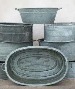 Grande fioriera in metallo zincato con manici per arredamento interno ed esterno. Trattandosi di oggetti antichi,misure e dimensioni variano di fioriera in fioriera.