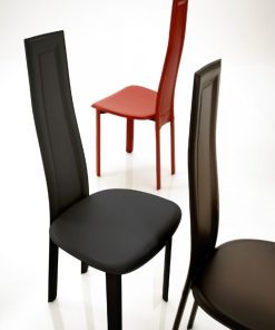 Sedia moderna Floriana realizzata da Eurosedia Design, pensata per ambienti moderni e ricercati. La sedia design si contraddistingue per lo schienale alto dal profilo sinuoso, composta da struttura in metallo con rivestimento in vero cuoio in diversi colori disponibili.