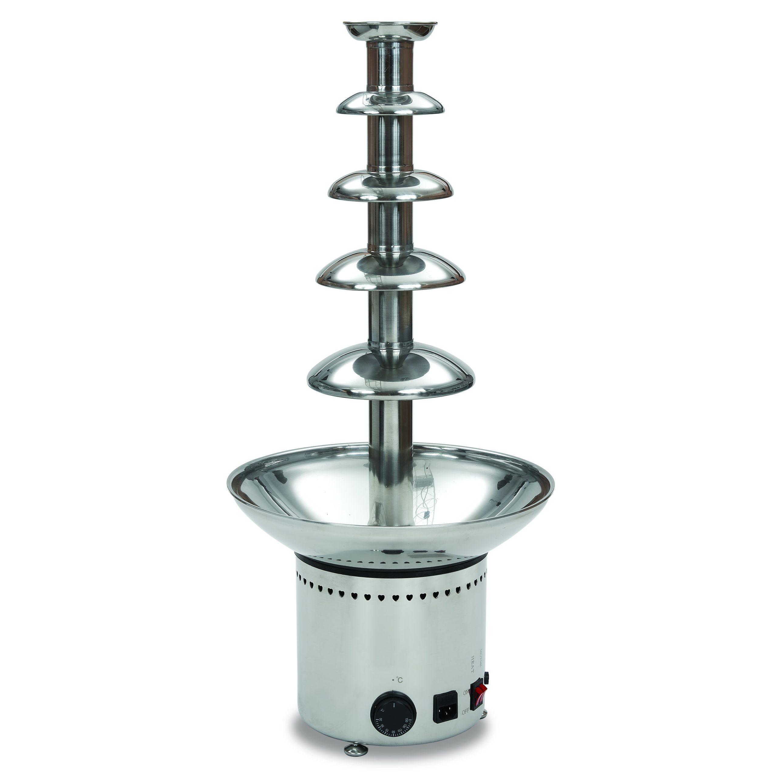 La fontana di cioccolato Top Chef cm.80 della linea Horecatech Accessori Cucina di Horecatech SRL è l’attrazione perfetta per feste, matrimoni, servizi di catering ed eventi speciali. La sua struttura e la vite senza fine in acciaio inox garantiscono robustezza e durata, mentre tutte le parti a contatto con gli alimenti sono realizzate in acciaio AISI 304, per un’igiene impeccabile. Il funzionamento con vite senza fine assicura un flusso continuo di cioccolato fuso, creando un effetto cascata spettacolare. I 2 pulsanti ON/OFF (motore/riscaldamento) permettono di controllare facilmente la fontana. La torretta, la vite e la vasca si smontano facilmente per una pulizia ottimale, rendendo la manutenzione semplice e veloce. Per un risultato perfetto, si consiglia di utilizzare cioccolato già fuso. Questa fontana di cioccolato è l’ideale per aggiungere un tocco di dolcezza e divertimento a qualsiasi evento.