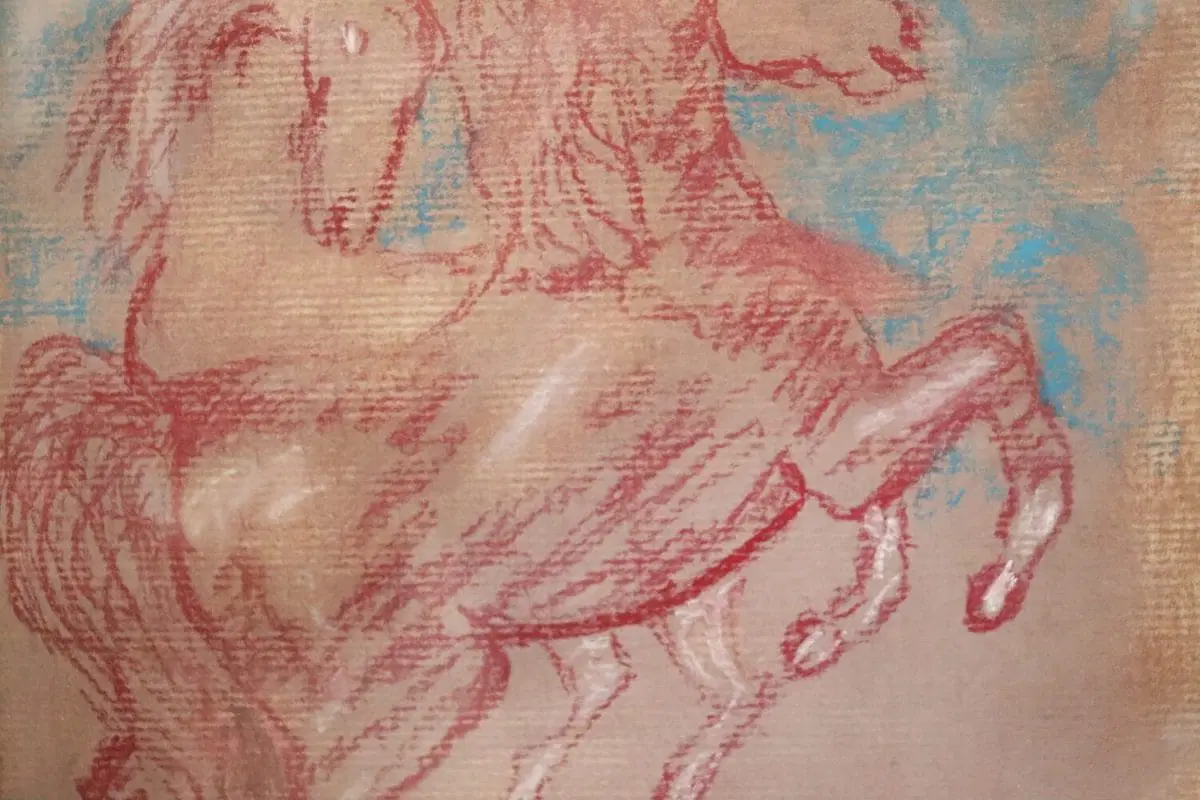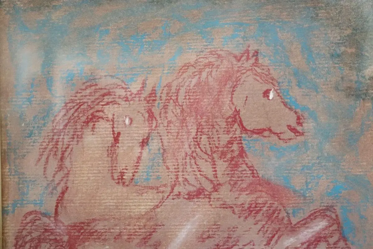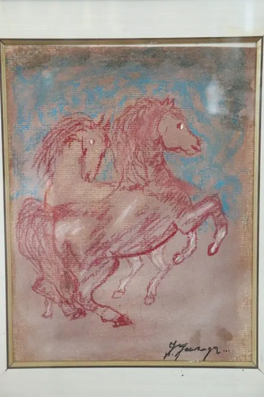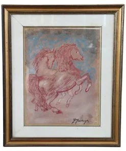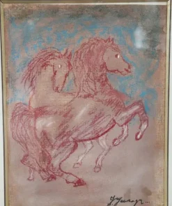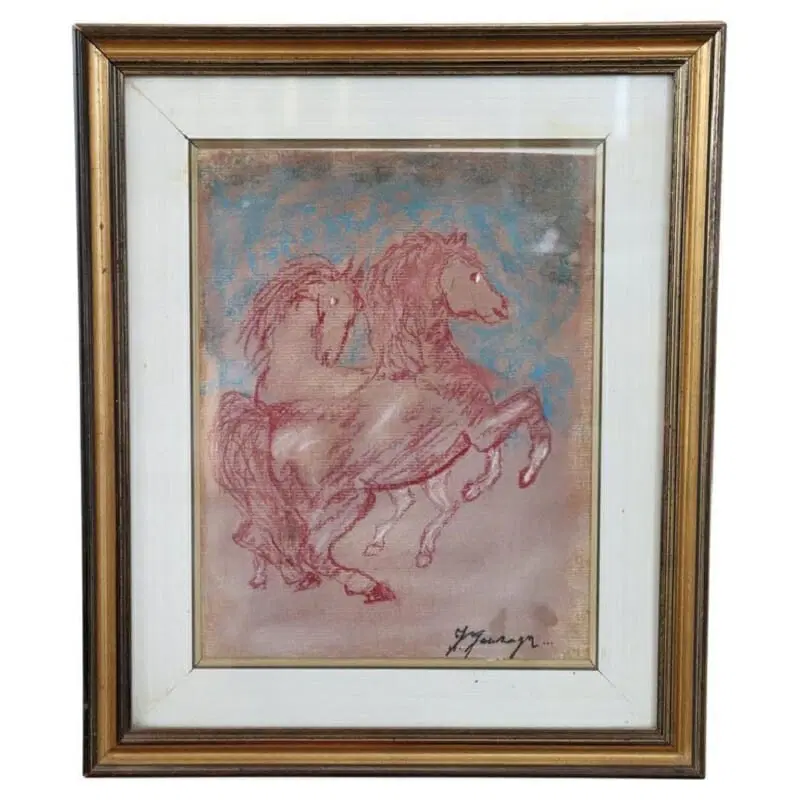 Artista italiano pastelli colorati su carta, “cavalli”. Firmato sul fronte Francesco Gonzaga, importante artista italiano.