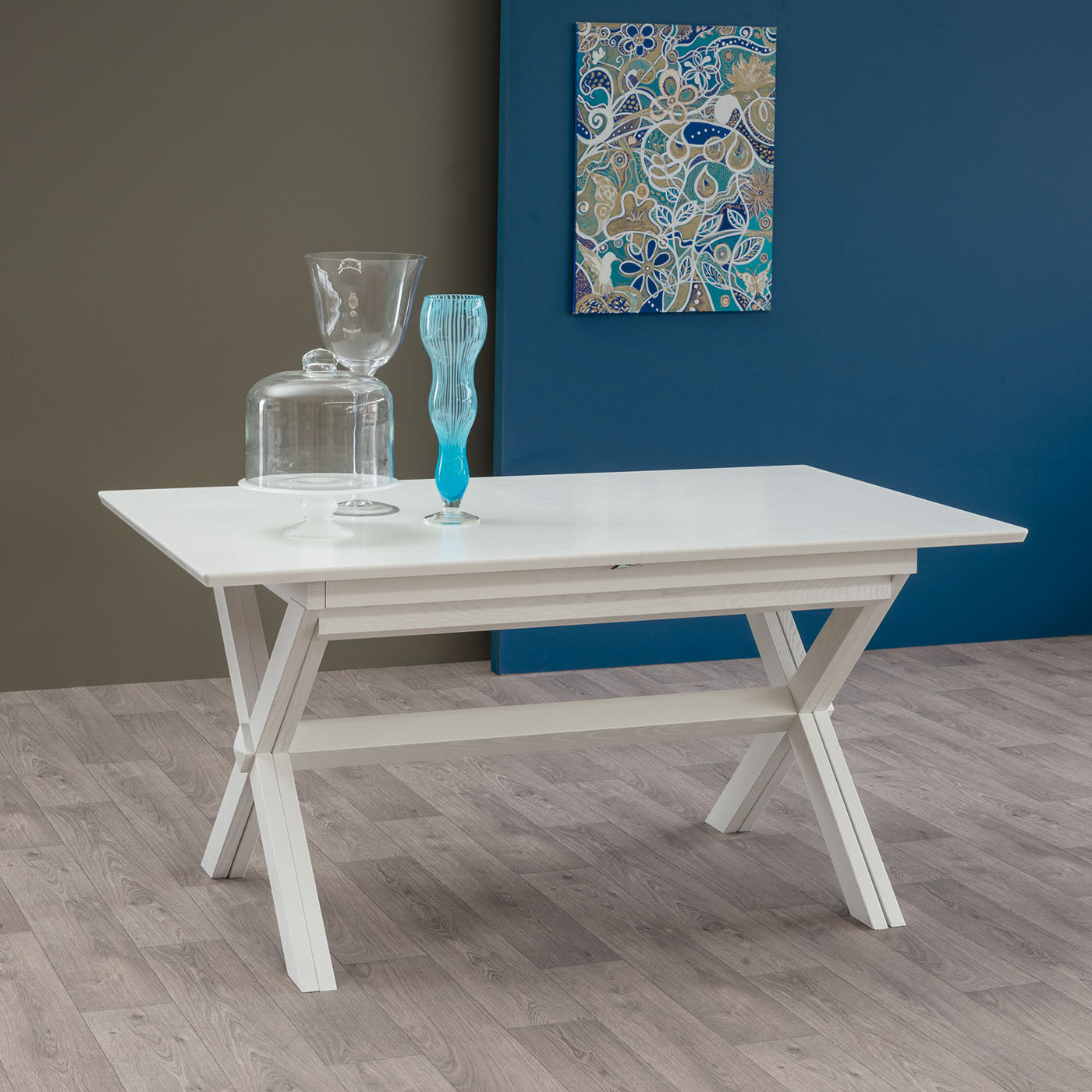 Tavolo allungabile modello Gambor realizzato in legno e caratterizzato dalle gambe ad X, elemento che ha scopo non solo estetico ma anche funzionale. Infatti, il tavolo moderno Gambor presenta la base che si sdoppia quando il tavolo viene allungato, ottenendo un supporto centrale che garantisce il massimo della stabilità del tavolo. Gambor è ideale per chi necessita di un tavolo che si estende ampiamente, disponibile da cm 180 con 4 prolunghe da cm 45 in diversi colori.