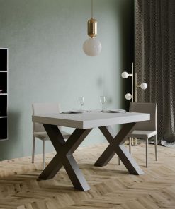 Lodevole tavolo da pranzo fisso Garamond, la soluzione giusta per chi cerca solo Made in Italy, optando per un arredo all’insegna della contemporaneità. Questo tavolo moderno esibisce la sua peculiarità nel design delle gambe ad X, costituite da una robusta struttura in ferro colore antracite, a cui si unisce il piano realizzato in legno con finiture diverse, per assecondare ogni esigenza, come: cemento, bianco frassino, quercia natura o noce.
