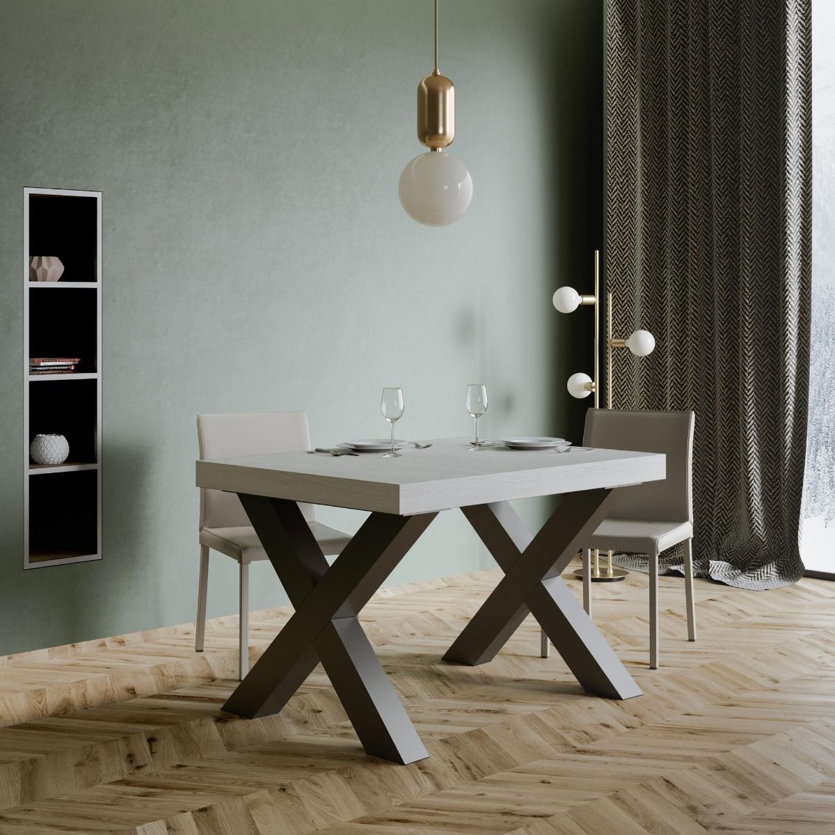Tavolo da pranzo fisso Garamond, composto da gambe ad X realizzate in metallo e piano in legno, design e qualità interamente italiana.