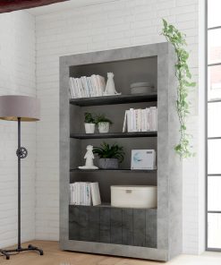 Garda – Libreria moderna colore cemento e ossido con ripiani e 2 ante cm 110x42x190h
