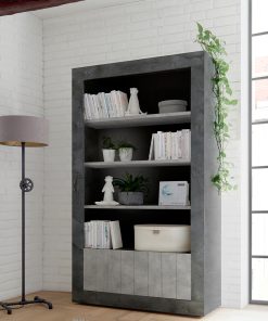 Garda – Libreria moderna colore cemento e ossido con ripiani e 2 ante cm 110x42x190h