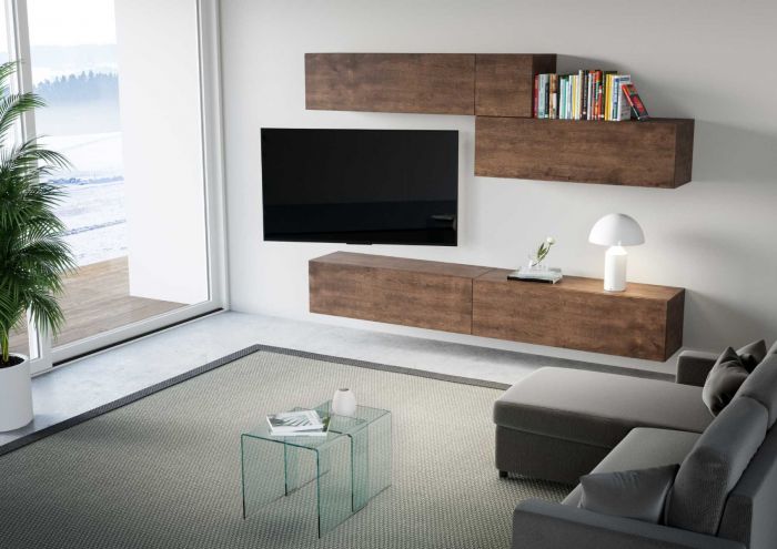 Gaston è la parete da soggiorno ideale per chi ama la modernità ma che desidera mantenere la bellezza del legno naturale con una classica finitura come il noce. Infatti, la nostra parete moderna è composta da semplici e lineari pensili orizzontali in questo caldo colore.