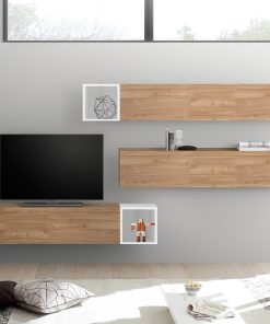 Semplici pensili orizzontali accostati a un vano a giorno, formano la composizione di questa parete moderna, impiegabile anche come set per l’ingresso, date le dimensioni ridotte dei pensili e che si adattano a qualsiasi parete. L’essenzialità del design è la caratteristica principale, per permettere a questi pensili, di risultare esteticamente piacevoli dappertutto, grazie anche alle diverse finiture messe a disposizione.