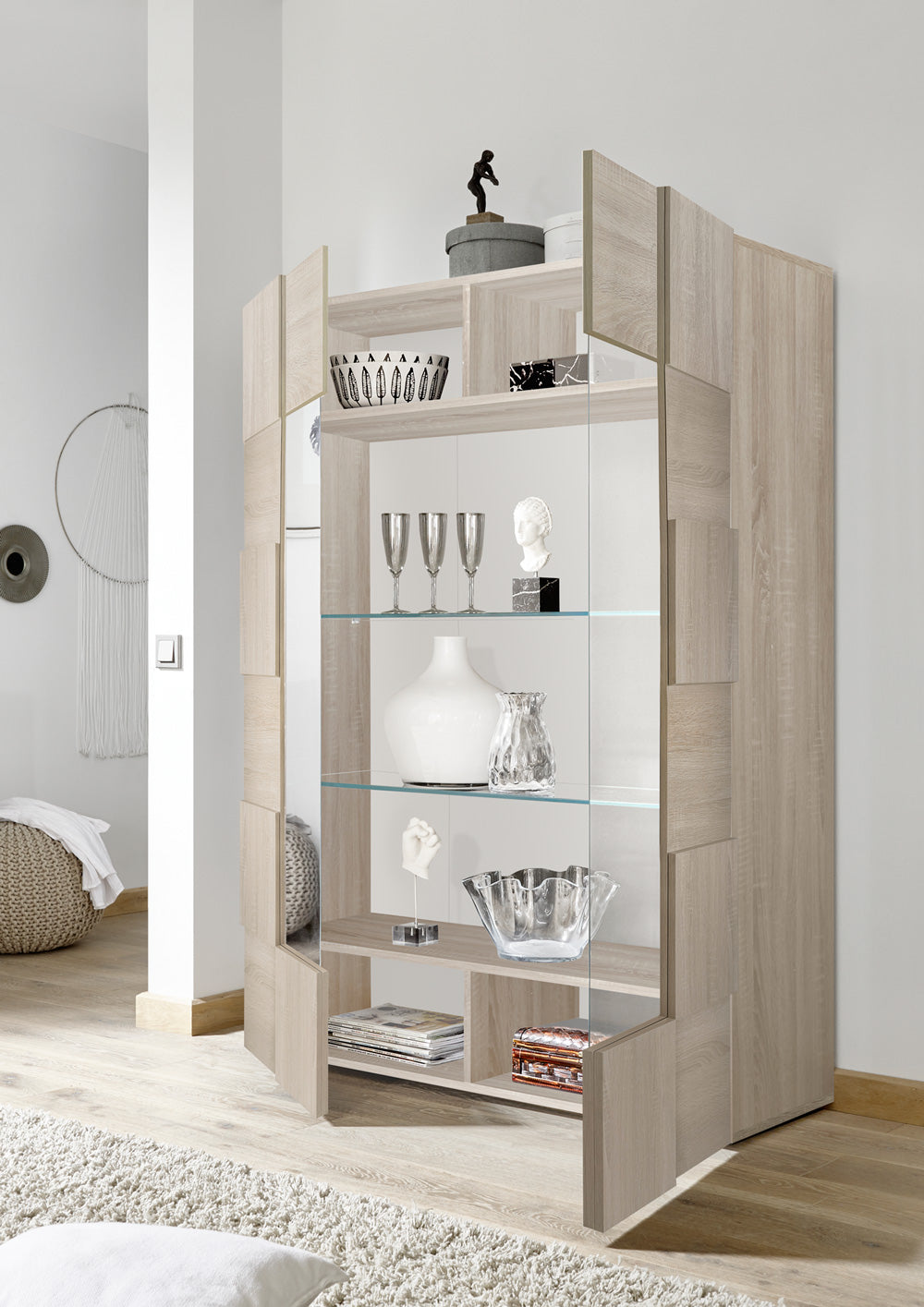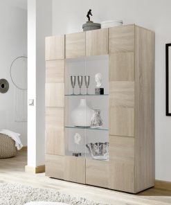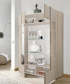 Vetrina di design Ginger, un mobile pensato per chi cerca un arredamento originale, raffinato ed unico. Questa mobile vetrina si caratterizza per la splendida facciata lavorata a quadri in rilievo, alternati, che creano un aspetto geometrico e un effetto dinamico, per ambienti giovanili e innovativi. La vetrina Ginger, tuttavia, conserva un pizzico di tradizione nella finitura rovere samoa, ideale per chi apprezza l’aspetto naturale del legno.
