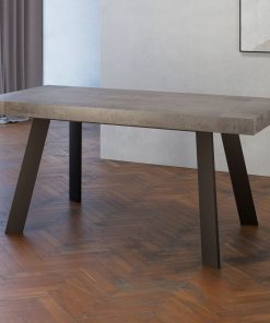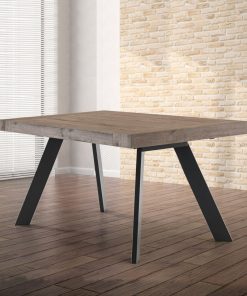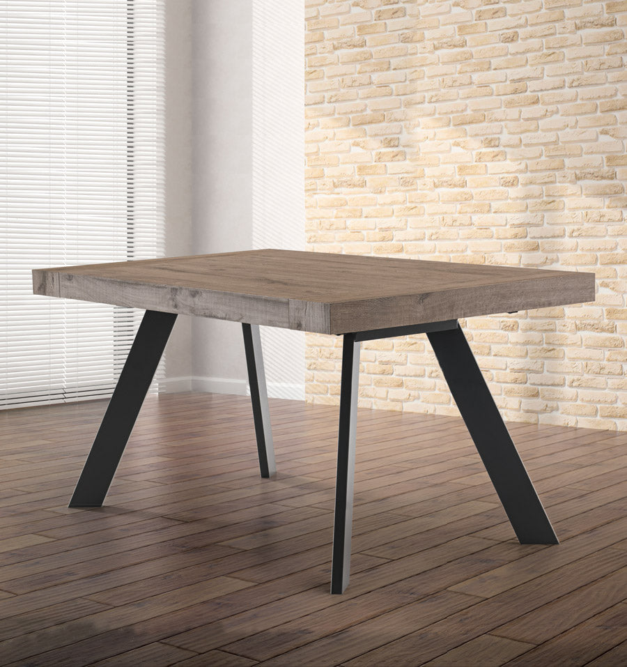 Tavolo da pranzo allungabile Glodovic, un ottimo suggerimento per chi sta arredando il soggiorno in stile industriale. Infatti, il tavolo moderno Glodovic presenta gambe oblique in metallo con piano in legno estensibile per mezzo di 2 allunghe da cm 50.