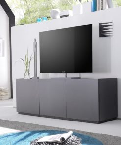 Glory è un mobile tv 3 ante realizzato in legno grigio opaco, facente parte di una linea di mobili per soggiorno ispirati a uno stile minimale. Infatti volumi lineari definiscono questo mobile da soggiorno diviso da 3 ante senza maniglia. Glory si caratterizza per una base che potrai scegliere di colore grigio opaco o wengé, creando un leggero contrasto e un accostamento interessante.