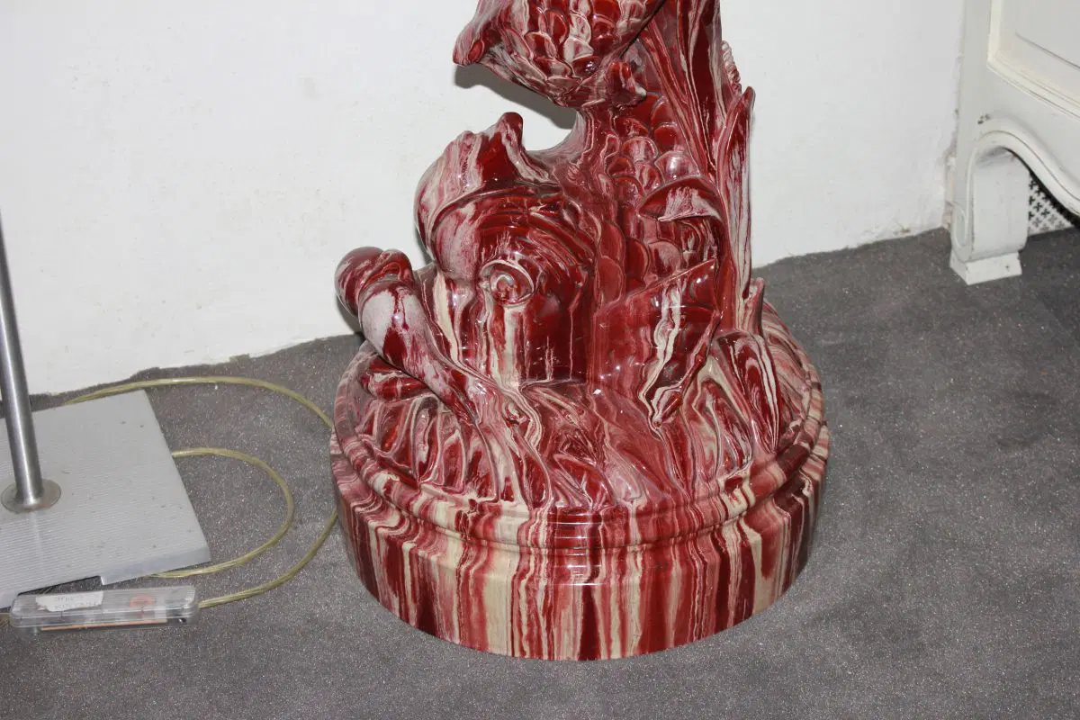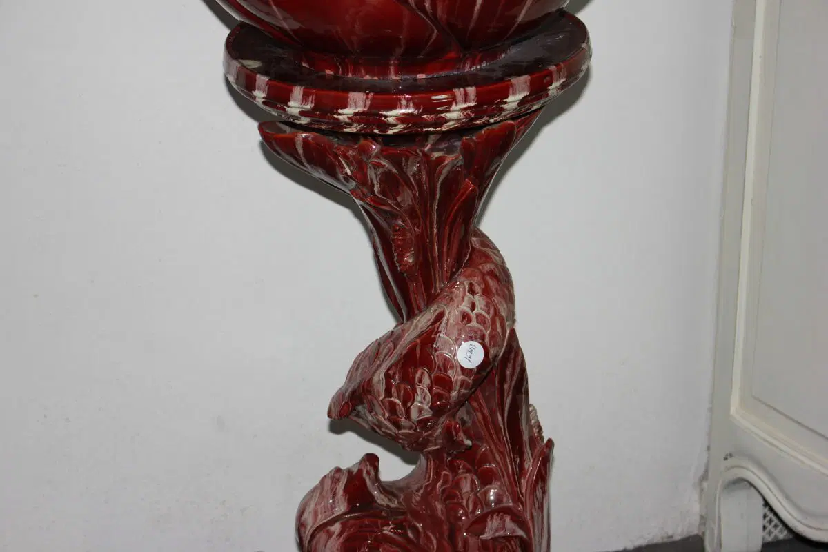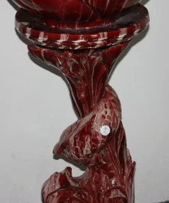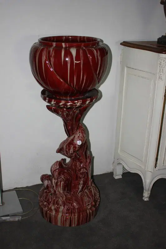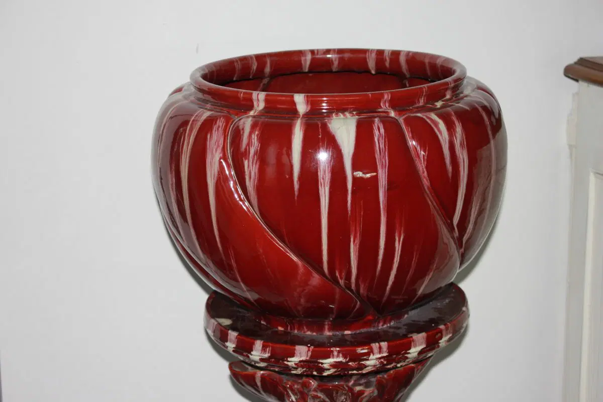 Grande Cachepot vaso porta piante francese di inizio 1900 in ceramica smaltata rossa. Presenta piedistallo.
