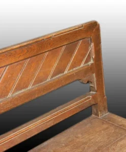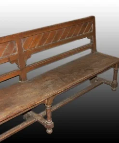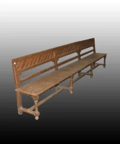 Grande panca francese di inizio 1800 in legno di rovere, misura 3 metri e 49 cm; gambe riunite da crociera in massello.
