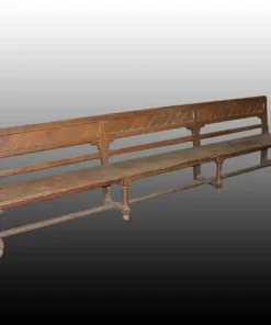 Grande panca francese di inizio 1800 in legno di rovere, misura 3 metri e 49 cm; gambe riunite da crociera in massello.