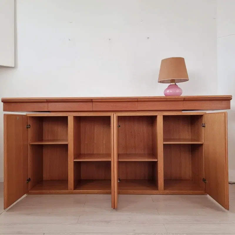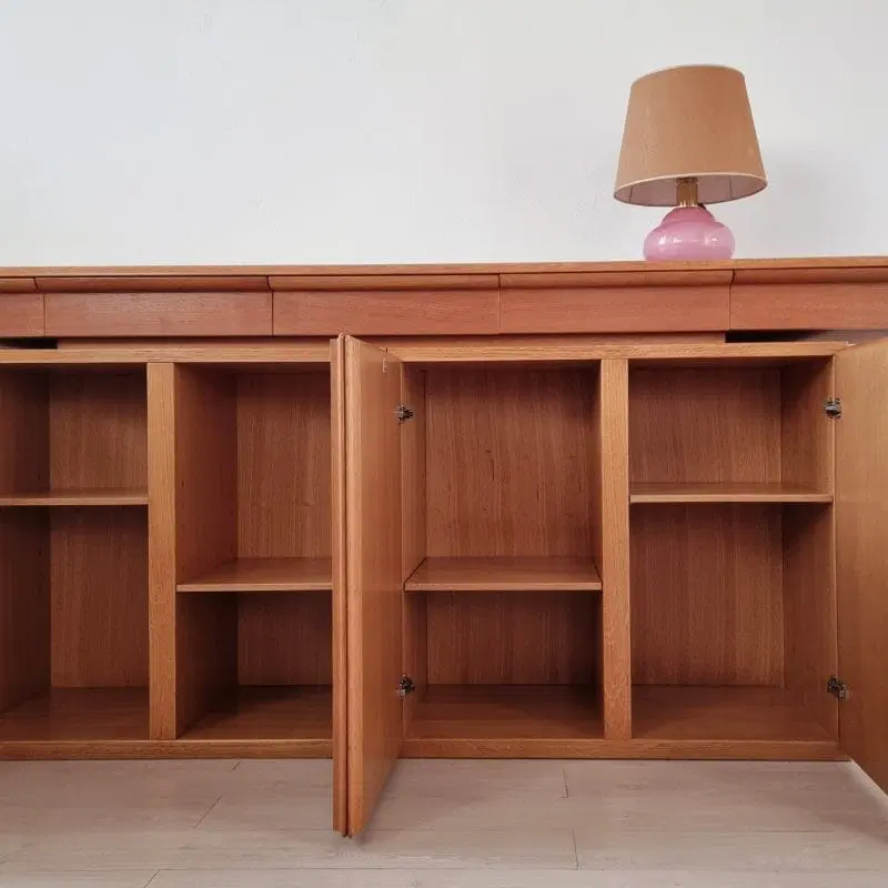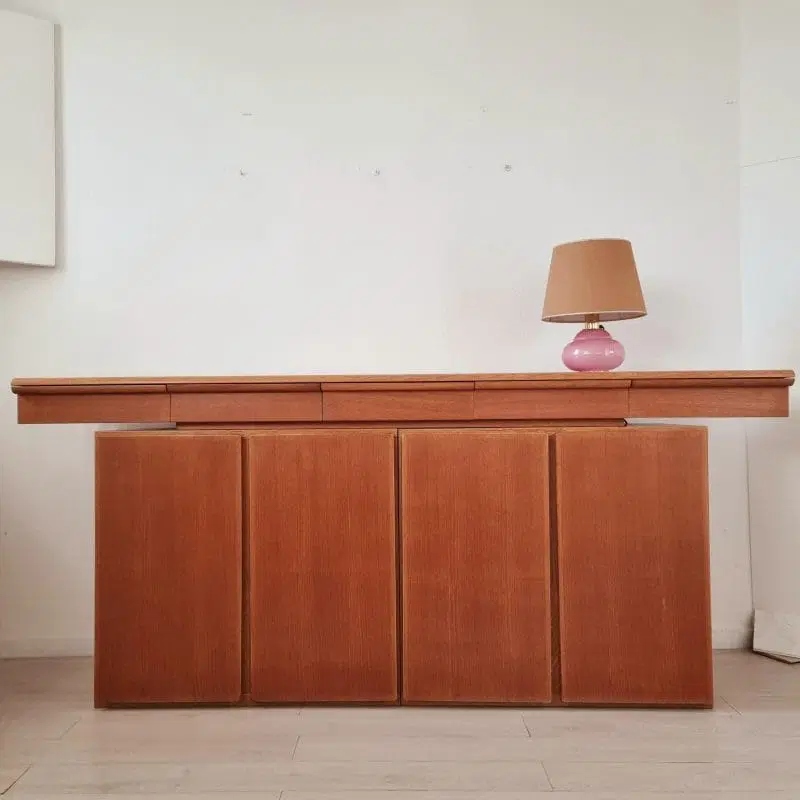 Giuseppe Rossi di Albizzate storica azienda di Varese da sempre specializzata in arredi di alta gamma , ne è un esempio questa bella credenza, realizzata in legno di rovere ed organizzata con sportelli completi di ripiani e ampi cassetti .