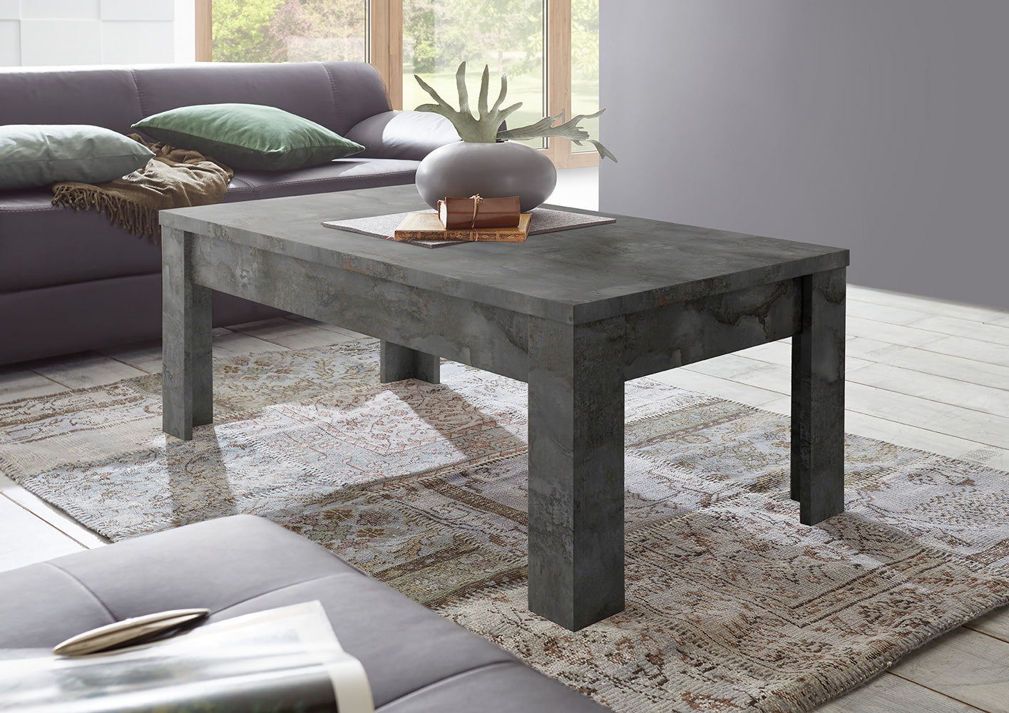 Idrial – Tavolino basso da salotto moderno in legno finitura ossido cm 122x65x45h