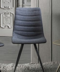Sedia moderna Ingrid realizzata con gambe in metallo e scocca in tessuto antracite, attraversata da tante impunture orizzontali. La sedia è versatile, considerando che potrà essere utilizzata per la casa o per l’ufficio.