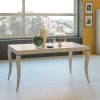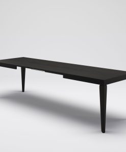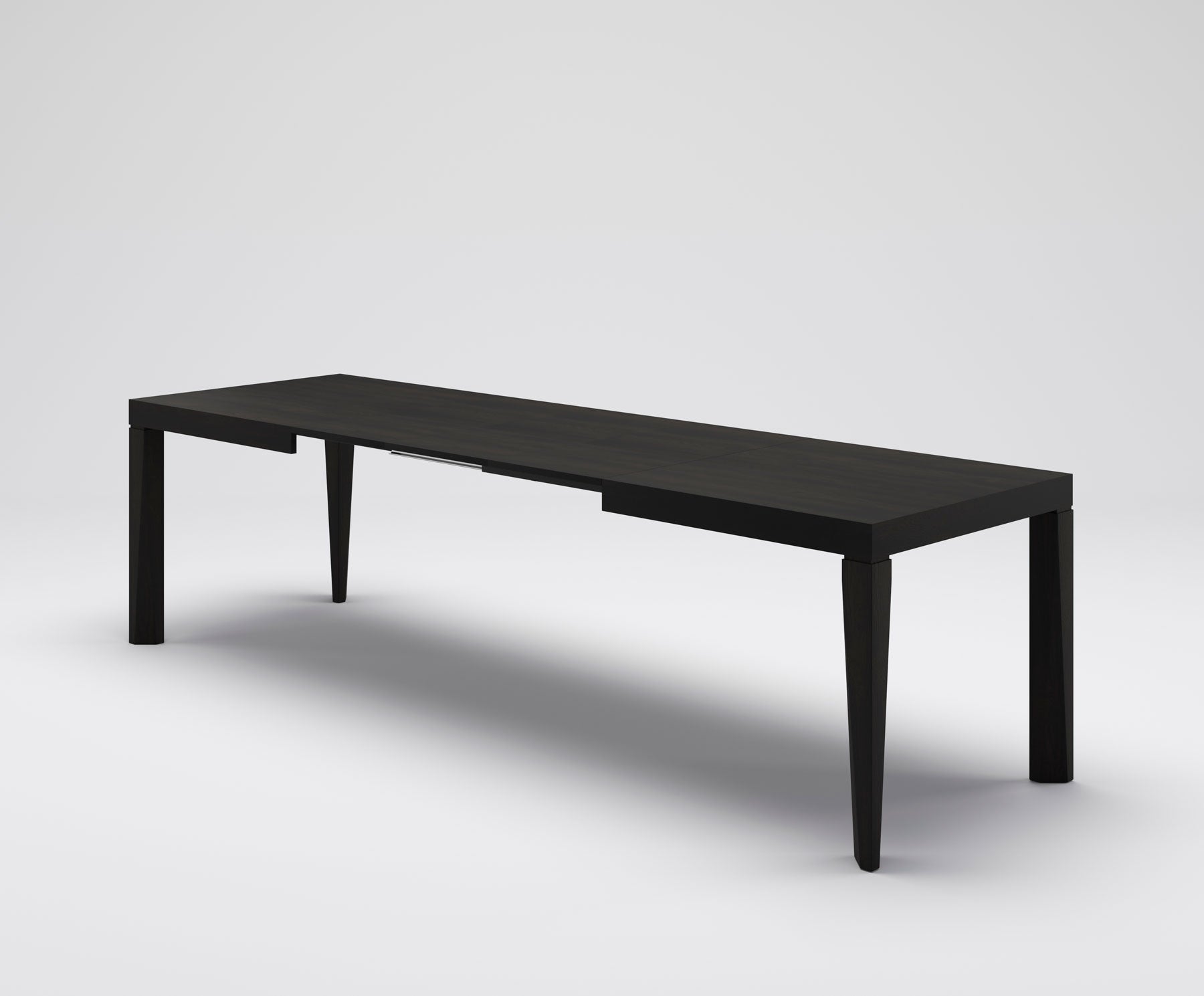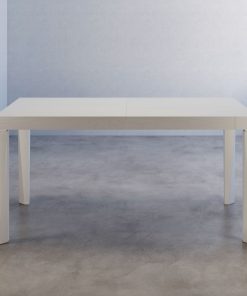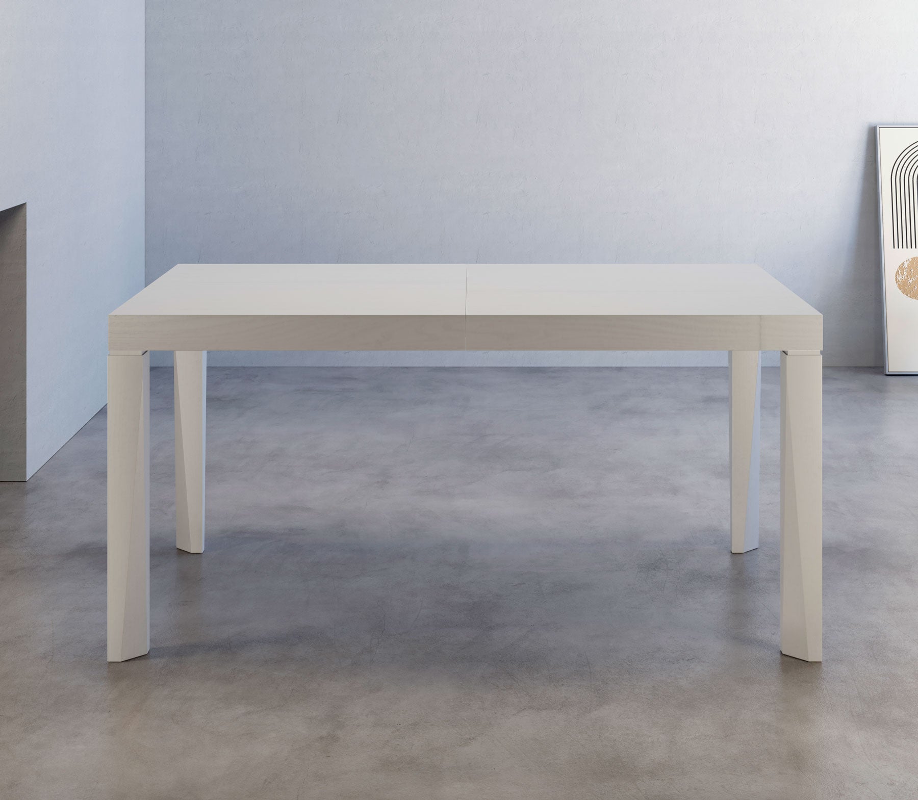 Tavolo allungabile realizzato in legno in diverse finiture a scelta, distinto dalla presenza di gambe robuste dalla forma quadrata ma realizzate con angoli smussati che regalano un tocco molto caratteristico. Il tavolo moderno è fornito di efficiente e pratico meccanismo di estensione telescopico realizzato in metallo che apre il tavolo stesso e offre lo spazio dove sistemare le allunghe.