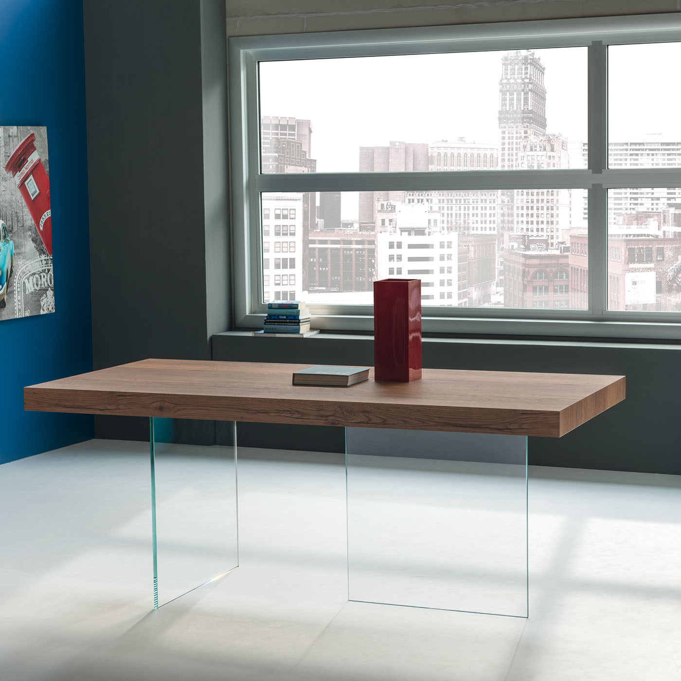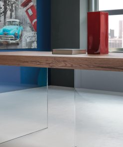 Esclusivo tavolo fisso Ivard, il modello giusto per arredare il tuo salotto con stile innovativo per chi ama distinguersi. Il tavolo moderno Ivard è frutto di un design e una lavorazione attenta Made in Italy. La base composta da due lastre in vetro trasparente, disposte perpendicolarmente tra loro, è il tratto distintivo di questo particolare modello. Il piano è realizzato in legno in 3 finiture a scelta.