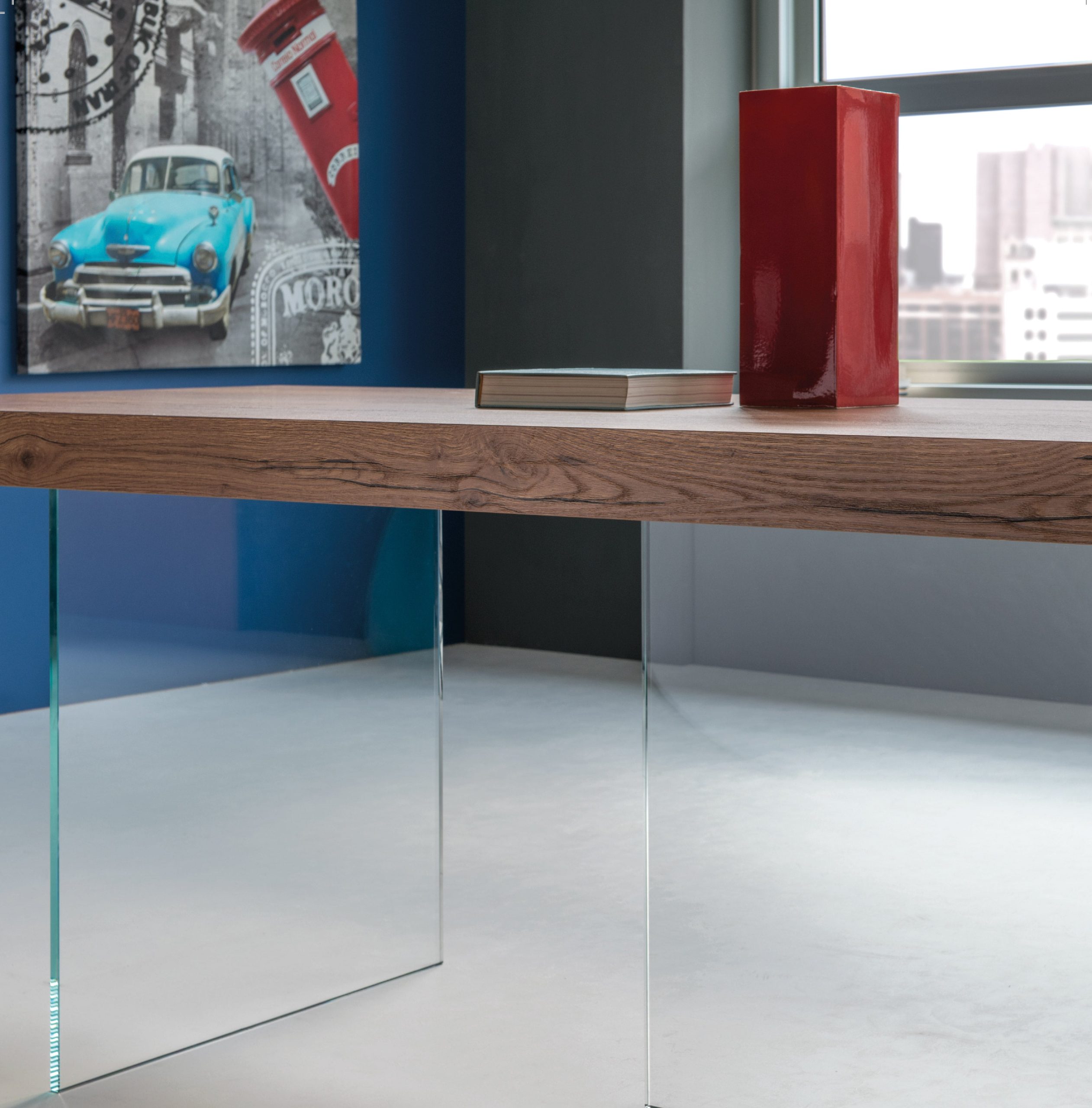 Ivard – Tavolo da salotto fisso piano in legno gambe in vetro trasparente