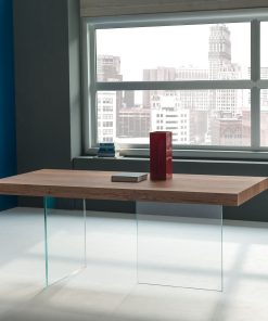 Stupendo tavolo design fisso Ivard, ideale per arricchire il tuo salotto o per attrezzare la sala riunioni di un tavolo ampio e ricercato. Il tavolo moderno Ivard è realizzato da artigiani Made in Italy, caratterizzato da base con 2 lastre in vetro trasparente disposte in maniera perpendicolare tra loro.