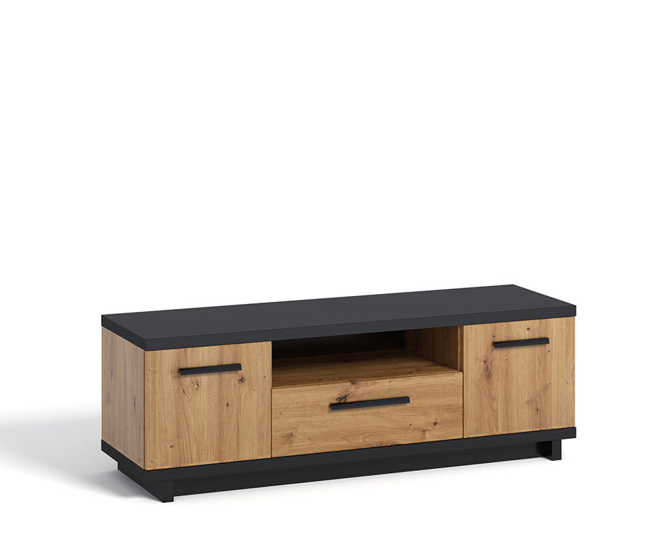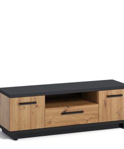 Jason – Mobile porta tv basso stile industriale in legno nero e naturale cm 135x40x46h