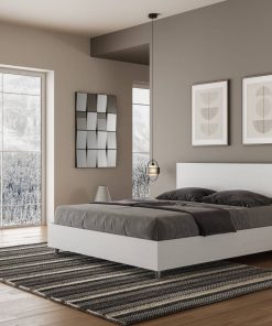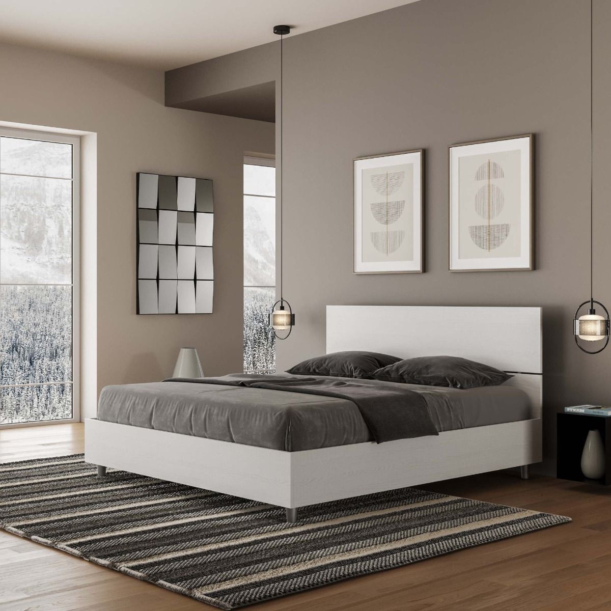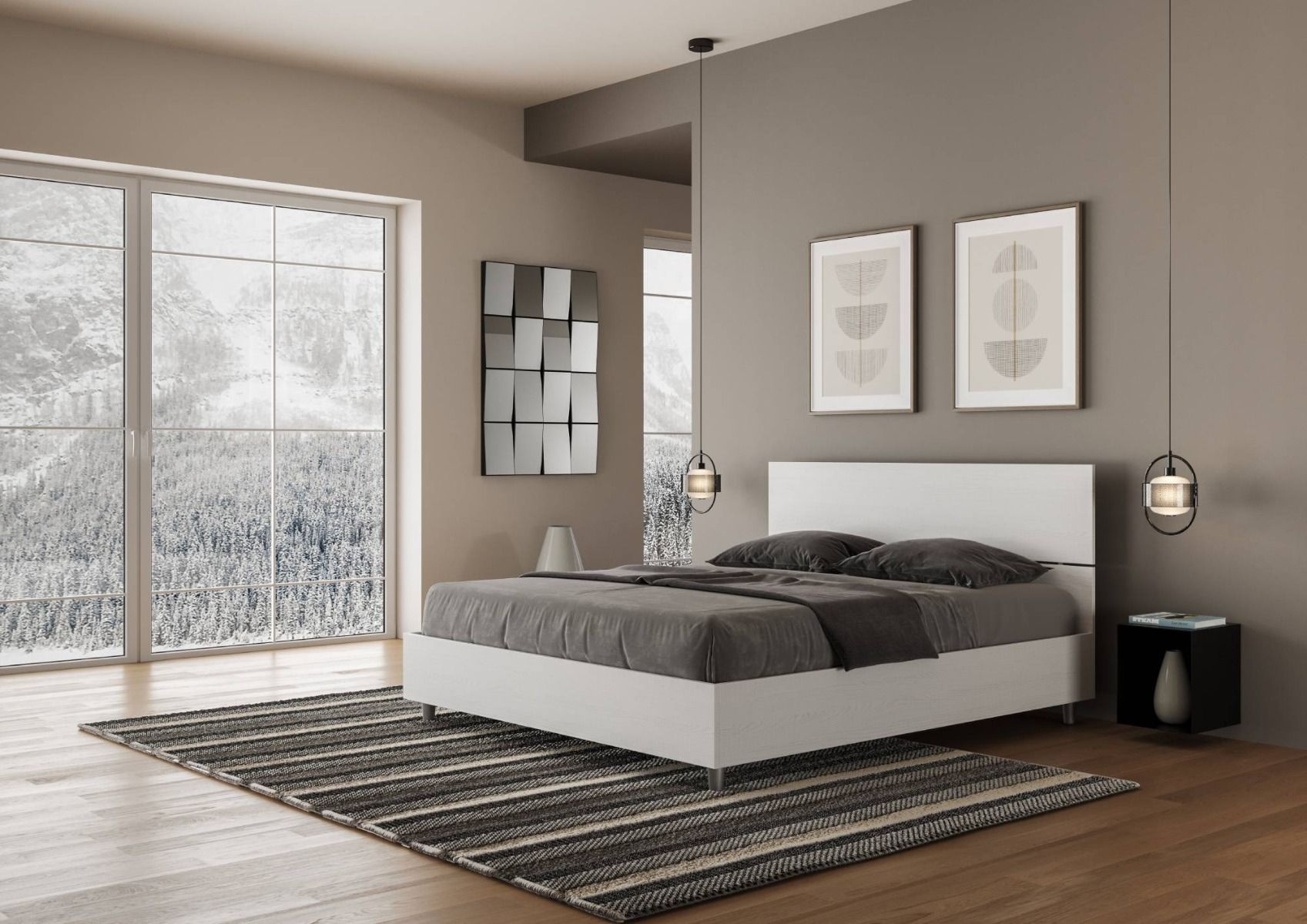 Letto da cm 160 matrimoniale prodotto interamente in legno fintura bianco frassino, sobrio e versatile nello stile, piacevole per ogni gusto. Kesil si contraddistingue per la testata composta da due grandi doghe, realizzato in Italia con dedizione e professionalità.